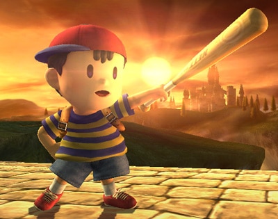 Lo Smash laterale di Ness è una mazza da baseball che richiede un lungo tempo di preparazione per colpire, ma che picchia veramente duro.